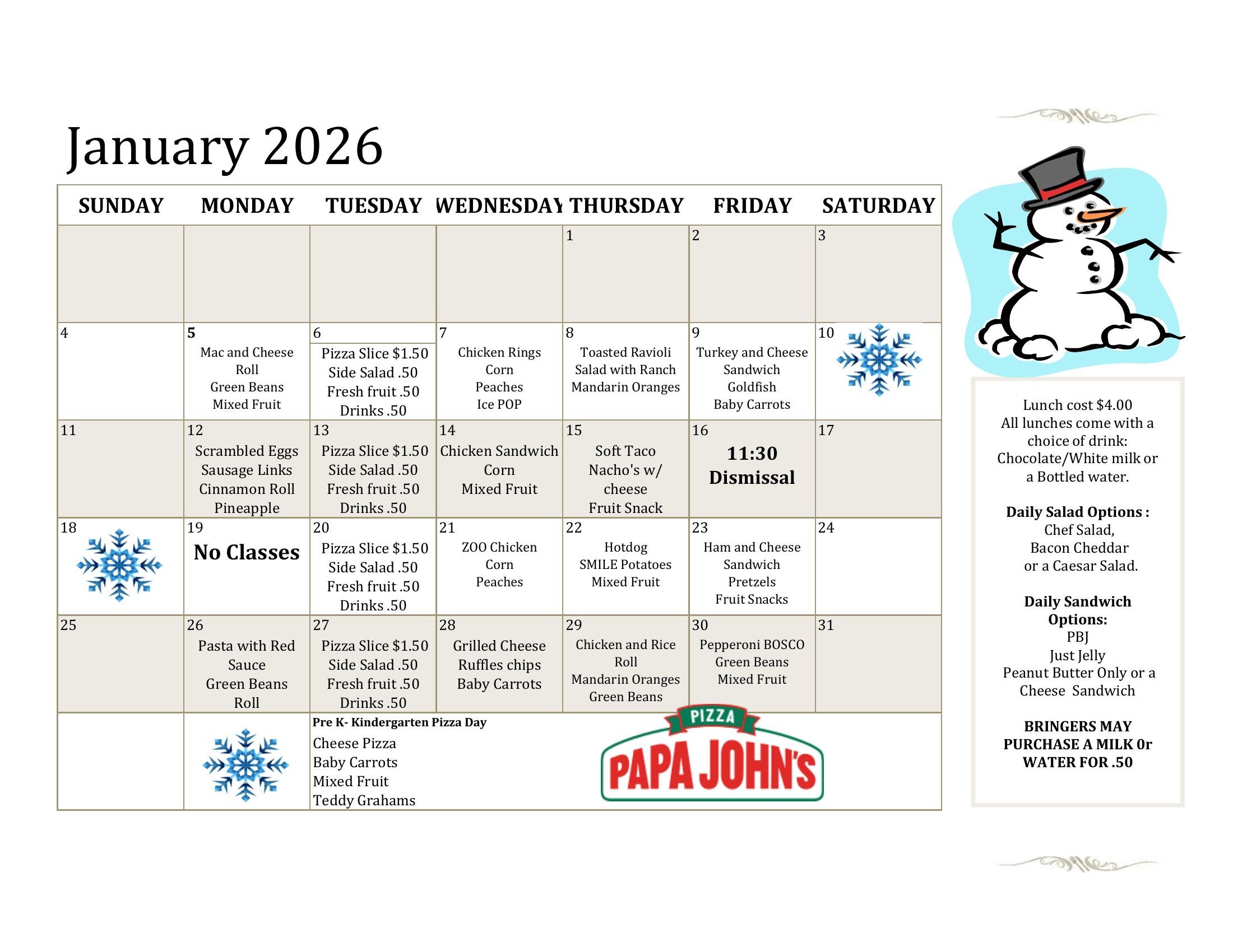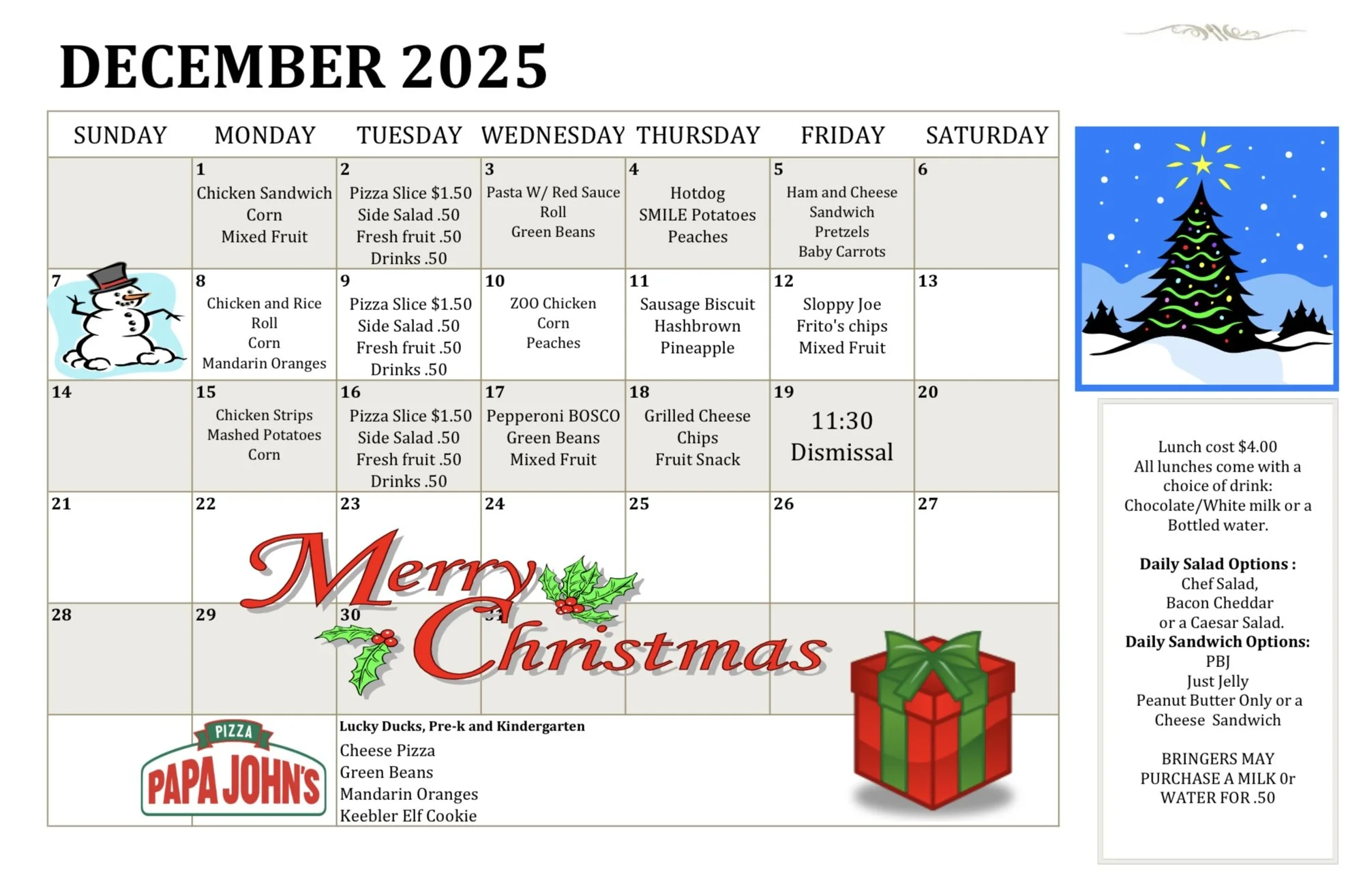 Daily lunch is $4.00 (including a drink)