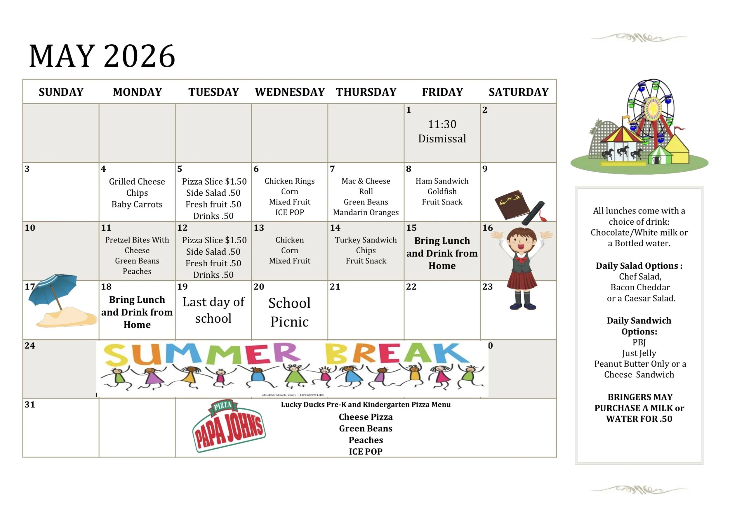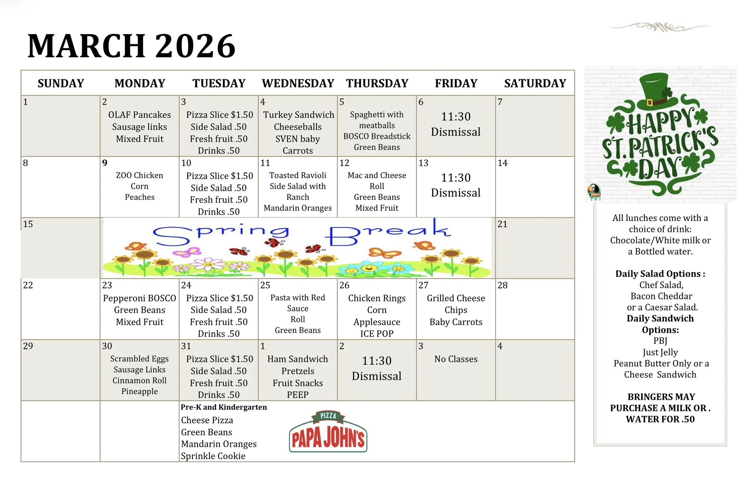 We encourage all families to have a conversation with your child(ren) regarding lunch. Sometimes our children don’t know what your family rules are for purchasing extras. The school does not monitor how much money your child spends, that is a discussion between parents and their children.